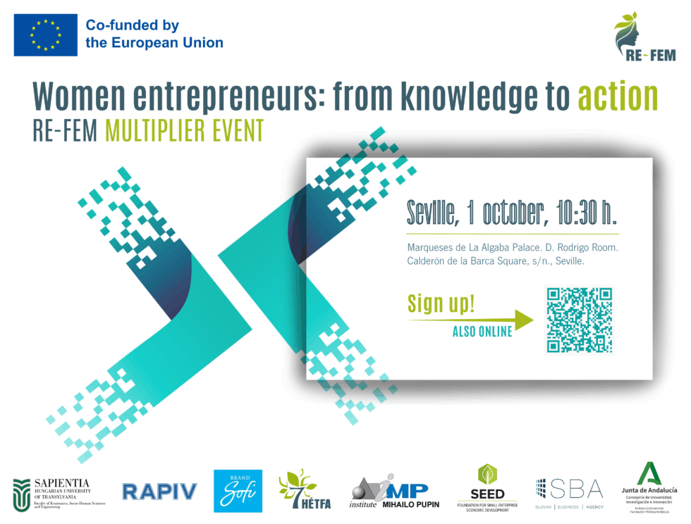 A Erasmus+ támogatott RE-FEM program36 hónapos megvalósítási idejében a női vállalkozók megerősítését tűzte ki célul Európa-szerte. A projekt azokat a gyakorlatokat, válaszreakciókat, ismereti tartalmakat azonosította és tette elérhetővé a női vállalkozások számára, amelyek a Covid–19 járvány – a női vállalkozásokat különösen érzékenyen módon érintő – hatásaira válaszul támogatják a munka és a magánélet közötti egyensúlyt, valamint a gazdasági talpon maradást.