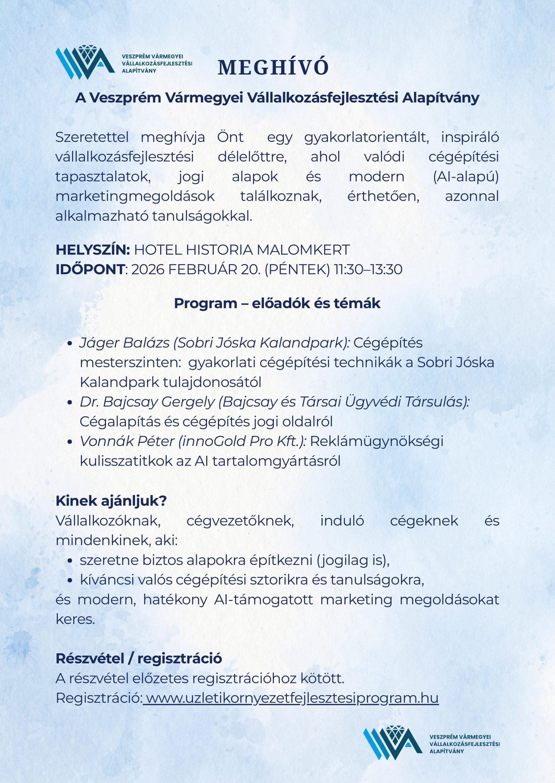 Veszprém Vármegyei Vállalkozásfejlesztési Alapítvány – Vállalkozásfejlesztési délelőtt